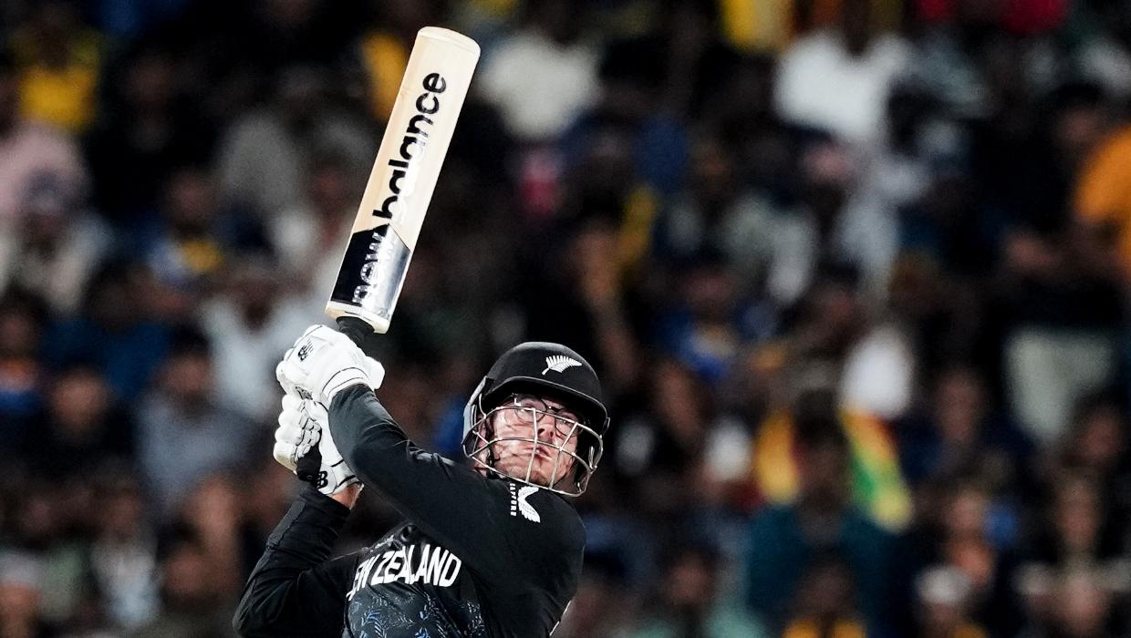 Ravindra was dropped by Dasun Shanaka on 25 off 16 when he skied one off Chameera, but the seamer went straight through Glenn Phillips with his next ball, sending him on his way for 18 off 18.