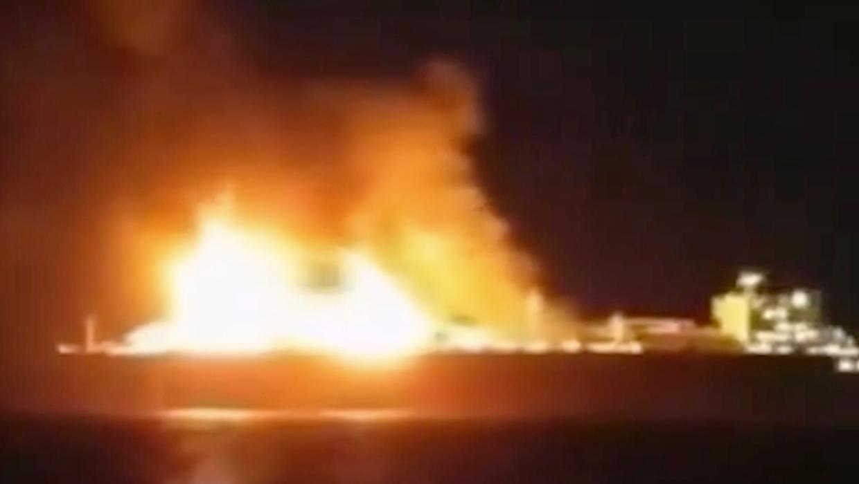 The Libyan Maritime Authority reported “sudden explosions, followed by a massive fire” on the Arctic Metagaz on Tuesday, when it was about 240km off the city of Sirte.